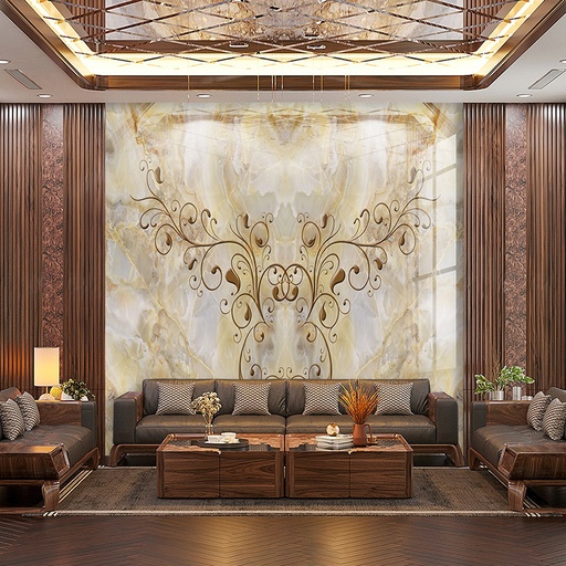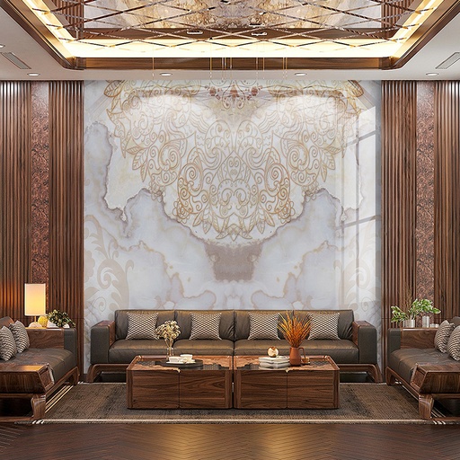 • Thẩm mỹ đỉnh cao: Họa tiết đối xứng độc đáo, sang trọng, mô phỏng chân thực các loại đá quý như Cẩm Thạch, Thạch Anh, Onyx, tạo nên không gian đẳng cấp.