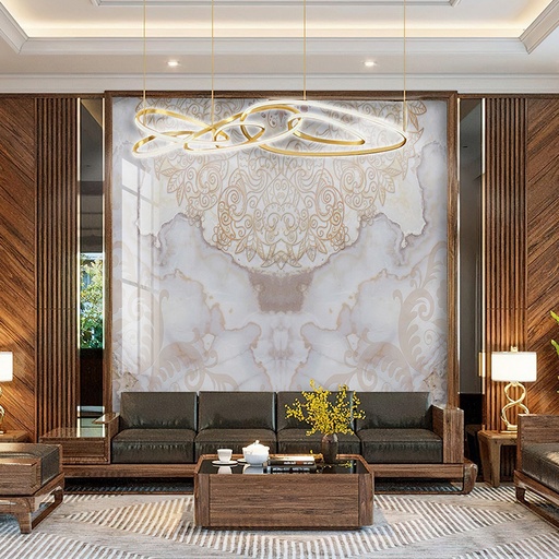 • Thẩm mỹ đỉnh cao: Họa tiết đối xứng độc đáo, sang trọng, mô phỏng chân thực các loại đá quý như Cẩm Thạch, Thạch Anh, Onyx, tạo nên không gian đẳng cấp.