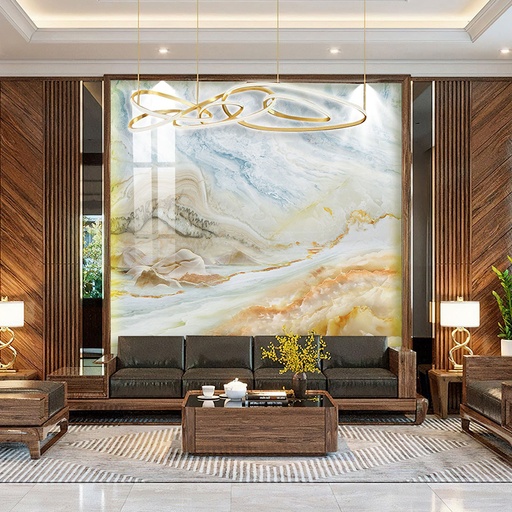 Nhờ vẻ đẹp sang trọng và tính linh hoạt, tranh vân đá giả ngọc được ứng dụng rộng rãi trong nhiều không gian kiến trúc khác nhau. Sản phẩm đặc biệt được ưa chuộng để tạo điểm nhấn cho các vách tường lớn như vách TV, vách đầu giường, hay khu vực sảnh chờ của khách sạn, nhà hàng, spa. Đây cũng là lựa chọn tuyệt vời để ốp tường thang máy, quầy lễ tân hoặc trang trí các cột nhà, mang lại sự bề thế và đẳng cấp. Trong không gian gia đình, các tranh PVC vân đá mẫu cho phòng khách không chỉ làm đẹp mà còn thể hiện gu thẩm mỹ tinh tế của gia chủ, tạo ra một không gian tiếp khách ấm cúng nhưng không kém phần lộng lẫy.