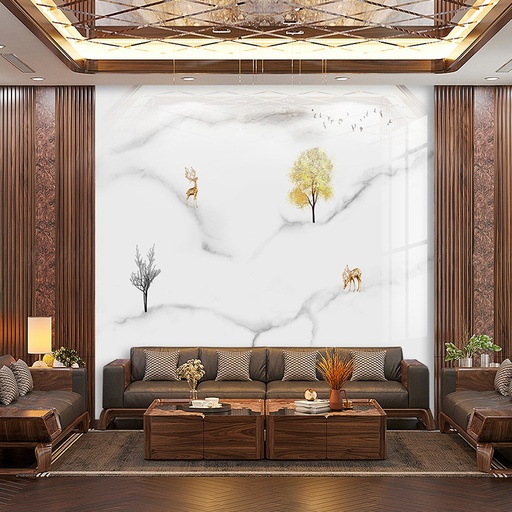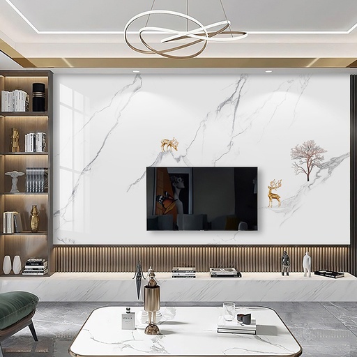 • Vẻ đẹp sang trọng, đẳng cấp: Họa tiết vân đá tự nhiên tinh xảo mang lại chiều sâu và sự sang trọng cho không gian phòng khách.