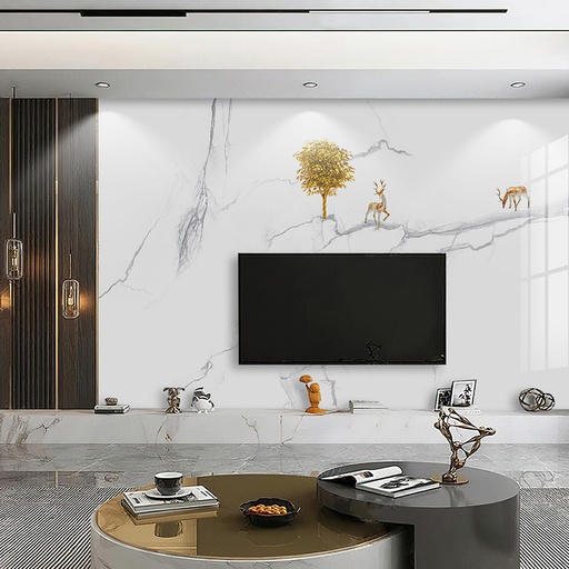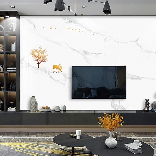 Tranh PVC vân đá cho phòng khách là dòng vật liệu trang trí nội thất thế hệ mới, được cấu tạo từ nhựa PVC nguyên sinh và bột đá. Bề mặt tranh được xử lý bằng công nghệ in UV 3D tiên tiến, cho phép tái tạo một cách hoàn hảo và sắc nét những đường vân phức tạp, màu sắc tinh tế của các loại đá quý trong tự nhiên như Marble, Onyx, Granite. Không chỉ dừng lại ở việc mô phỏng, sản phẩm còn mang đến sự linh hoạt trong thiết kế, giúp các kiến trúc sư và gia chủ dễ dàng hiện thực hóa những ý tưởng trang trí độc đáo cho các vị trí quan trọng như vách tivi, sau sofa hay vách ngăn không gian.