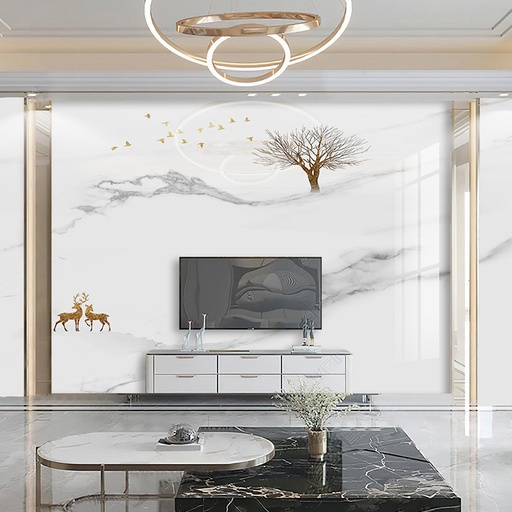 Tranh PVC vân đá cho phòng khách là dòng vật liệu trang trí nội thất thế hệ mới, được cấu tạo từ nhựa PVC nguyên sinh và bột đá. Bề mặt tranh được xử lý bằng công nghệ in UV 3D tiên tiến, cho phép tái tạo một cách hoàn hảo và sắc nét những đường vân phức tạp, màu sắc tinh tế của các loại đá quý trong tự nhiên như Marble, Onyx, Granite. Không chỉ dừng lại ở việc mô phỏng, sản phẩm còn mang đến sự linh hoạt trong thiết kế, giúp các kiến trúc sư và gia chủ dễ dàng hiện thực hóa những ý tưởng trang trí độc đáo cho các vị trí quan trọng như vách tivi, sau sofa hay vách ngăn không gian.