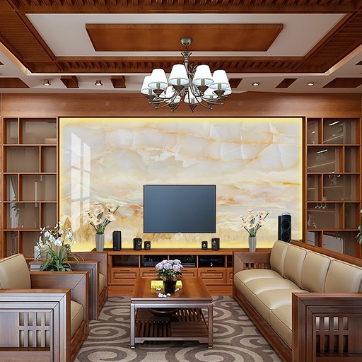 Tranh PVC vân đá cho phòng khách là dòng vật liệu trang trí nội thất thế hệ mới, được cấu tạo từ nhựa PVC nguyên sinh và bột đá. Bề mặt tranh được xử lý bằng công nghệ in UV 3D tiên tiến, cho phép tái tạo một cách hoàn hảo và sắc nét những đường vân phức tạp, màu sắc tinh tế của các loại đá quý trong tự nhiên như Marble, Onyx, Granite. Không chỉ dừng lại ở việc mô phỏng, sản phẩm còn mang đến sự linh hoạt trong thiết kế, giúp các kiến trúc sư và gia chủ dễ dàng hiện thực hóa những ý tưởng trang trí độc đáo cho các vị trí quan trọng như vách tivi, sau sofa hay vách ngăn không gian.