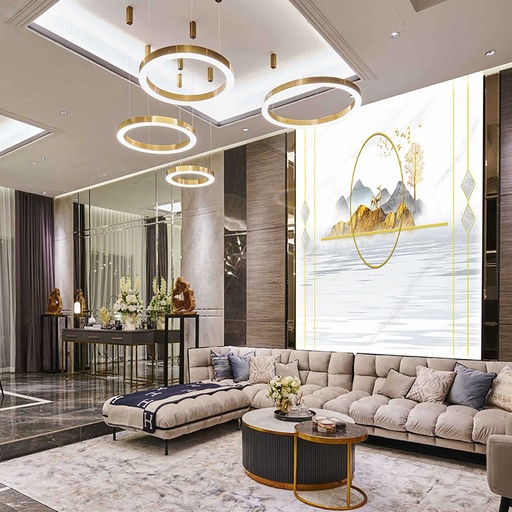 Sự linh hoạt của tranh PVC vân đá cho phòng khách cho phép ứng dụng tại nhiều vị trí để tạo điểm nhấn thẩm mỹ. Phổ biến nhất là ốp trang trí cho vách tivi, biến khu vực giải trí thành trung tâm của sự chú ý. Ngoài ra, tranh còn được sử dụng để ốp mảng tường lớn sau sofa, tạo phông nền nghệ thuật cho khu vực tiếp khách. Với các thiết kế nhà hiện đại, tranh vân đá còn được dùng để trang trí vách ngăn, cột nhà hay thậm chí là ốp trần. Sự đa năng này còn mở rộng ra các không gian khác, quý khách có thể tham khảo thêm các ý tưởng cho tranh PVC vân đá mẫu cho phòng ngủ để tạo sự đồng bộ cho toàn bộ ngôi nhà.