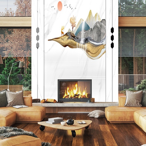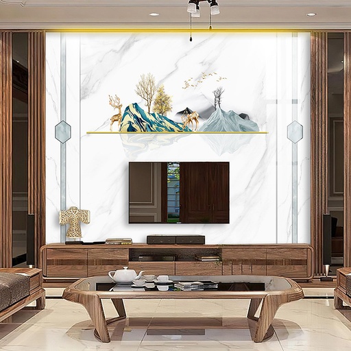 • Vẻ đẹp sang trọng, đẳng cấp: Họa tiết vân đá tự nhiên tinh xảo mang lại chiều sâu và sự sang trọng cho không gian phòng khách.