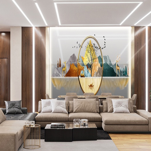 Sự linh hoạt của tranh PVC vân đá cho phòng khách cho phép ứng dụng tại nhiều vị trí để tạo điểm nhấn thẩm mỹ. Phổ biến nhất là ốp trang trí cho vách tivi, biến khu vực giải trí thành trung tâm của sự chú ý. Ngoài ra, tranh còn được sử dụng để ốp mảng tường lớn sau sofa, tạo phông nền nghệ thuật cho khu vực tiếp khách. Với các thiết kế nhà hiện đại, tranh vân đá còn được dùng để trang trí vách ngăn, cột nhà hay thậm chí là ốp trần. Sự đa năng này còn mở rộng ra các không gian khác, quý khách có thể tham khảo thêm các ý tưởng cho tranh PVC vân đá mẫu cho phòng ngủ để tạo sự đồng bộ cho toàn bộ ngôi nhà.