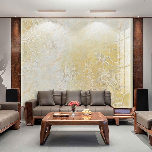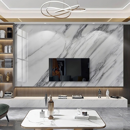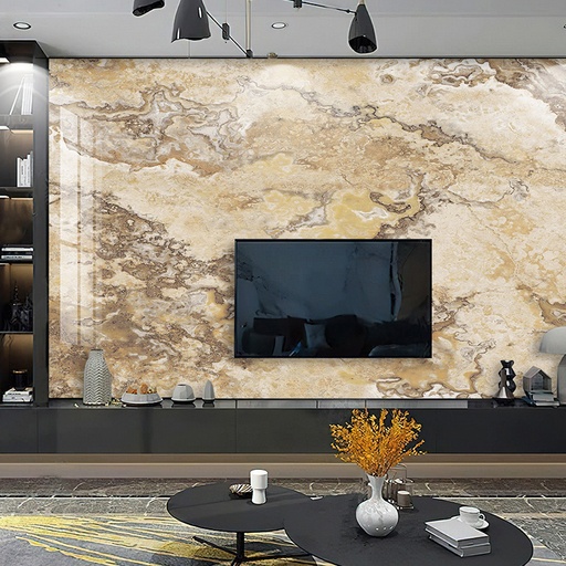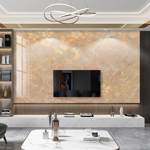 • Vẻ đẹp sang trọng, đẳng cấp: Họa tiết vân đá tự nhiên tinh xảo mang lại chiều sâu và sự sang trọng cho không gian phòng khách.