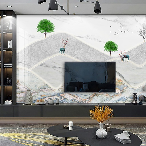 Tranh PVC vân đá cho phòng khách là dòng vật liệu trang trí nội thất thế hệ mới, được cấu tạo từ nhựa PVC nguyên sinh và bột đá. Bề mặt tranh được xử lý bằng công nghệ in UV 3D tiên tiến, cho phép tái tạo một cách hoàn hảo và sắc nét những đường vân phức tạp, màu sắc tinh tế của các loại đá quý trong tự nhiên như Marble, Onyx, Granite. Không chỉ dừng lại ở việc mô phỏng, sản phẩm còn mang đến sự linh hoạt trong thiết kế, giúp các kiến trúc sư và gia chủ dễ dàng hiện thực hóa những ý tưởng trang trí độc đáo cho các vị trí quan trọng như vách tivi, sau sofa hay vách ngăn không gian.