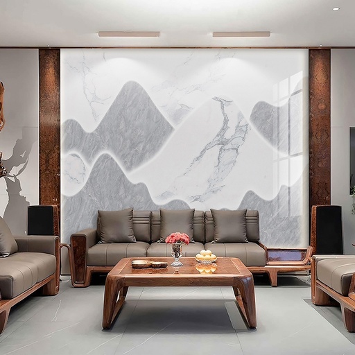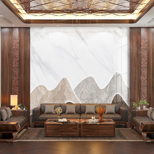 • Vẻ đẹp sang trọng, đẳng cấp: Họa tiết vân đá tự nhiên tinh xảo mang lại chiều sâu và sự sang trọng cho không gian phòng khách.