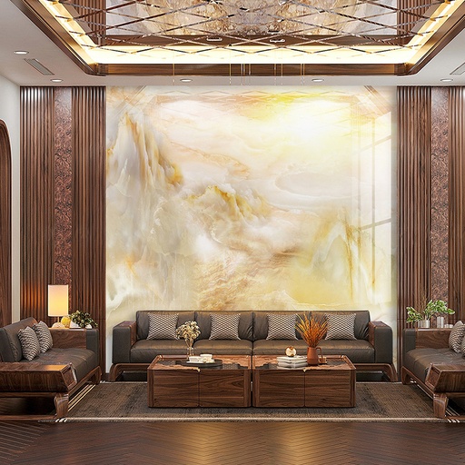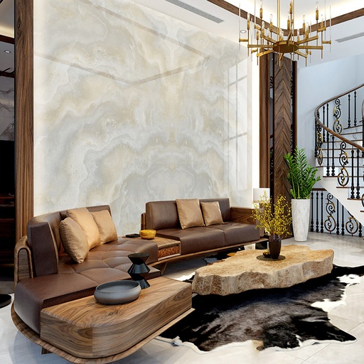 • Vẻ đẹp sang trọng, đẳng cấp: Họa tiết vân đá tự nhiên tinh xảo mang lại chiều sâu và sự sang trọng cho không gian phòng khách.