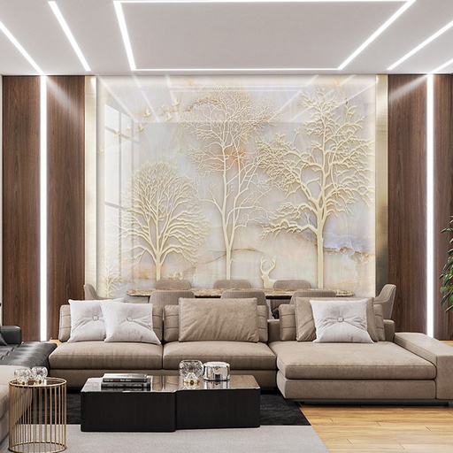 Tranh PVC vân đá cho phòng khách là dòng vật liệu trang trí nội thất thế hệ mới, được cấu tạo từ nhựa PVC nguyên sinh và bột đá. Bề mặt tranh được xử lý bằng công nghệ in UV 3D tiên tiến, cho phép tái tạo một cách hoàn hảo và sắc nét những đường vân phức tạp, màu sắc tinh tế của các loại đá quý trong tự nhiên như Marble, Onyx, Granite. Không chỉ dừng lại ở việc mô phỏng, sản phẩm còn mang đến sự linh hoạt trong thiết kế, giúp các kiến trúc sư và gia chủ dễ dàng hiện thực hóa những ý tưởng trang trí độc đáo cho các vị trí quan trọng như vách tivi, sau sofa hay vách ngăn không gian.