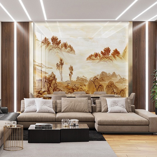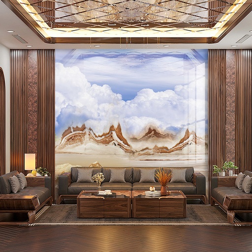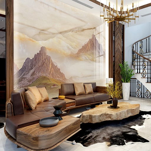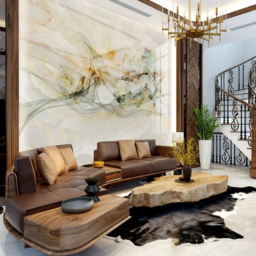 • Vẻ đẹp sang trọng, đẳng cấp: Họa tiết vân đá tự nhiên tinh xảo mang lại chiều sâu và sự sang trọng cho không gian phòng khách.