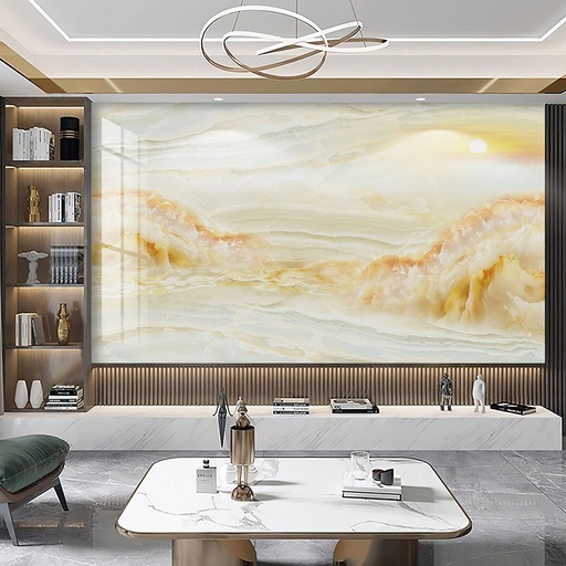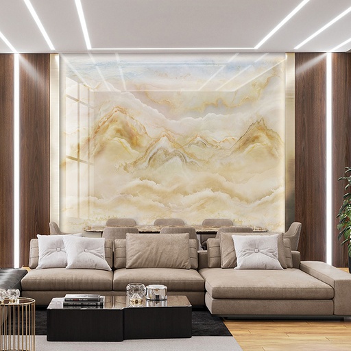 Tranh PVC vân đá cho phòng khách là dòng vật liệu trang trí nội thất thế hệ mới, được cấu tạo từ nhựa PVC nguyên sinh và bột đá. Bề mặt tranh được xử lý bằng công nghệ in UV 3D tiên tiến, cho phép tái tạo một cách hoàn hảo và sắc nét những đường vân phức tạp, màu sắc tinh tế của các loại đá quý trong tự nhiên như Marble, Onyx, Granite. Không chỉ dừng lại ở việc mô phỏng, sản phẩm còn mang đến sự linh hoạt trong thiết kế, giúp các kiến trúc sư và gia chủ dễ dàng hiện thực hóa những ý tưởng trang trí độc đáo cho các vị trí quan trọng như vách tivi, sau sofa hay vách ngăn không gian.