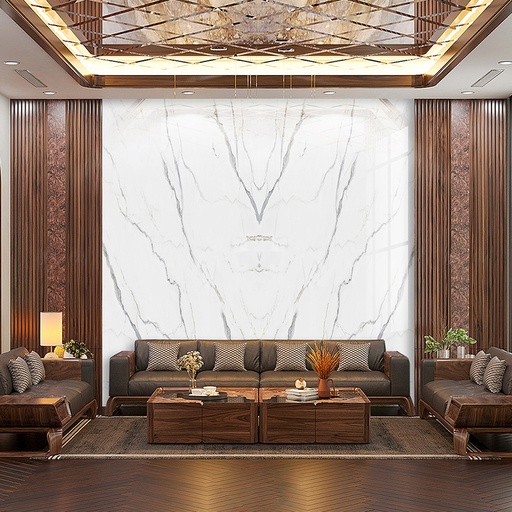 • Vẻ đẹp sang trọng, đẳng cấp: Họa tiết vân đá tự nhiên tinh xảo mang lại chiều sâu và sự sang trọng cho không gian phòng khách.