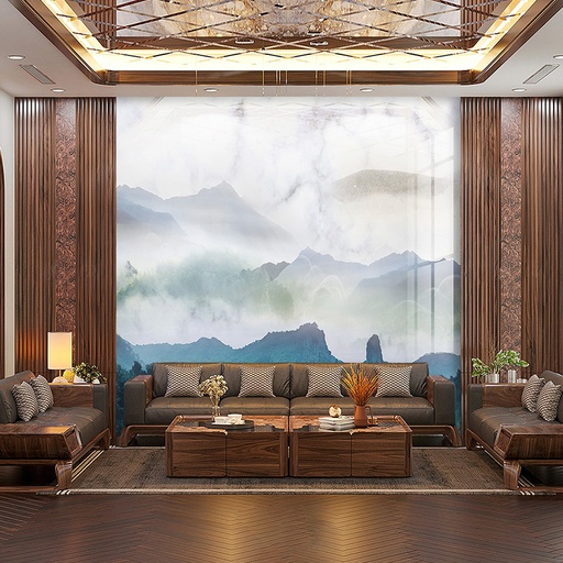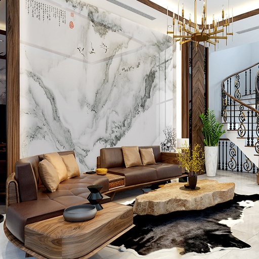 • Vẻ đẹp sang trọng, đẳng cấp: Họa tiết vân đá tự nhiên tinh xảo mang lại chiều sâu và sự sang trọng cho không gian phòng khách.