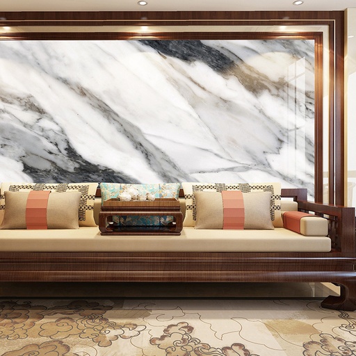 • Vẻ đẹp sang trọng, đẳng cấp: Họa tiết vân đá tự nhiên tinh xảo mang lại chiều sâu và sự sang trọng cho không gian phòng khách.