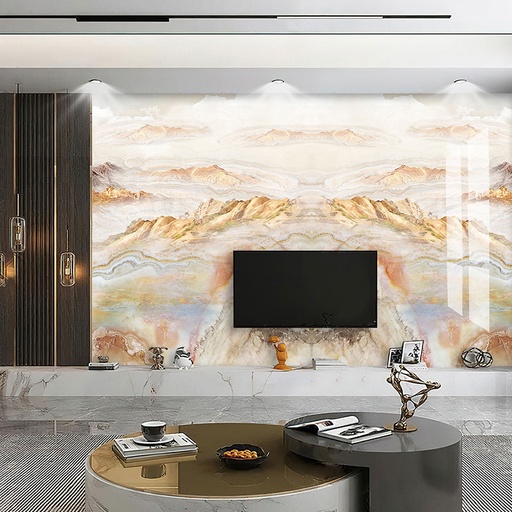 • Vẻ đẹp sang trọng, đẳng cấp: Họa tiết vân đá tự nhiên tinh xảo mang lại chiều sâu và sự sang trọng cho không gian phòng khách.
