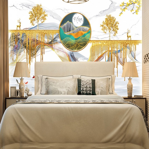 • Vân đá tự nhiên: Mô phỏng các loại đá marble, granite với đường vân chân thực, đây là dòng sản phẩm phổ biến nhất. Các mẫu tranh PVC vân đá tự nhiên mang đến vẻ đẹp vượt thời gian cho phòng ngủ.