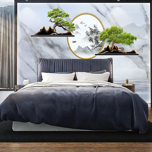 • Tranh vân đá đối xứng: Các mẫu tranh PVC vân đá mẫu đối xứng tạo ra sự cân bằng, hài hòa và bề thế, thường được ứng dụng cho vách đầu giường khổ lớn.