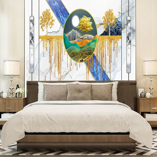 • Vân đá tự nhiên: Mô phỏng các loại đá marble, granite với đường vân chân thực, đây là dòng sản phẩm phổ biến nhất. Các mẫu tranh PVC vân đá tự nhiên mang đến vẻ đẹp vượt thời gian cho phòng ngủ.