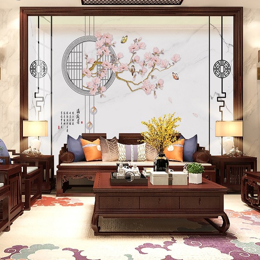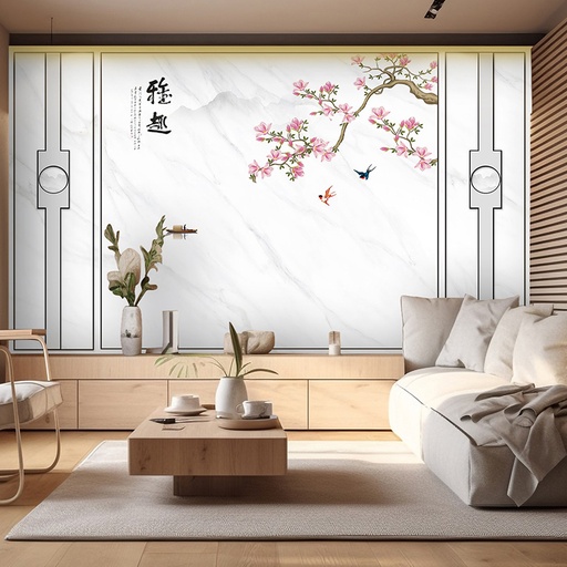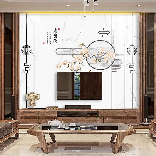 Ngoài ra, bố cục hài hòa cũng là một yếu tố quan trọng. Các mẫu tranh PVC vân đá mẫu đối xứng mang lại cảm giác cân bằng, trật tự và trang nghiêm, rất phù hợp cho các khu vực sảnh chính hoặc không gian trang trọng.