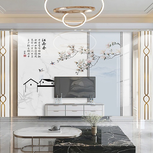 Nhờ tính linh hoạt và vẻ đẹp vượt thời gian, tranh vân đá Sơn Thủy - Bát Mã - Lam Sóng có thể được ứng dụng rộng rãi trong nhiều không gian khác nhau. Sản phẩm thường được sử dụng làm điểm nhấn chính sau kệ tivi, vách sofa, vách đầu giường hay tại các khu vực sảnh chờ, quầy lễ tân, phòng họp. Đặc biệt, đây là lựa chọn hoàn hảo khi tìm kiếm các mẫu tranh PVC vân đá mẫu cho phòng khách, nơi thể hiện rõ nhất gu thẩm mỹ và đẳng cấp của gia chủ. Vẻ đẹp của tranh không chỉ làm bừng sáng không gian mà còn tạo ra một câu chuyện, một thông điệp ý nghĩa mà chủ nhân muốn gửi gắm.