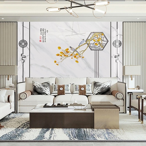Ngoài ra, bố cục hài hòa cũng là một yếu tố quan trọng. Các mẫu tranh PVC vân đá mẫu đối xứng mang lại cảm giác cân bằng, trật tự và trang nghiêm, rất phù hợp cho các khu vực sảnh chính hoặc không gian trang trọng.
