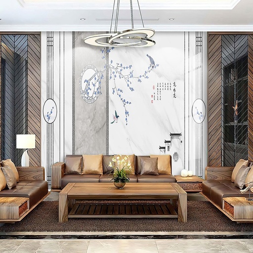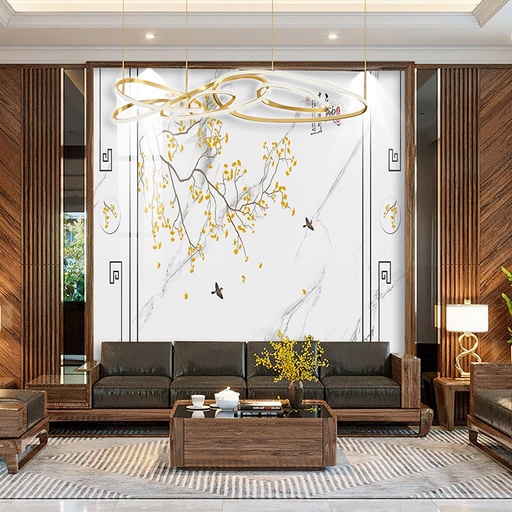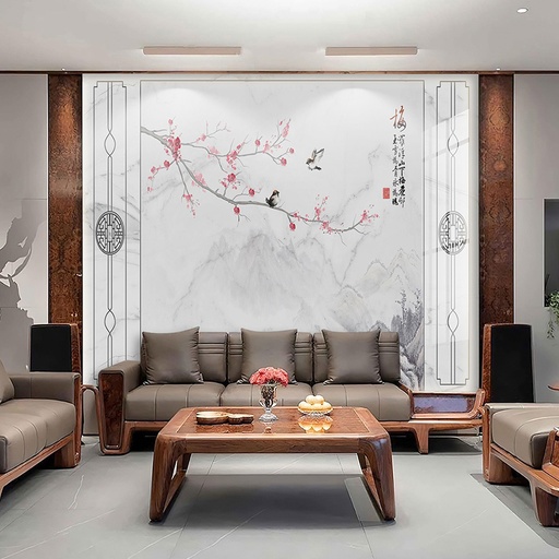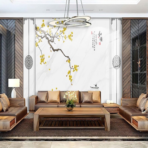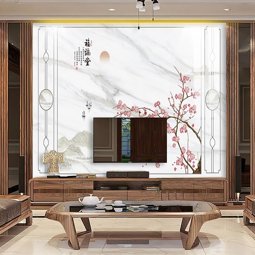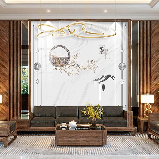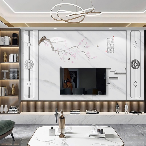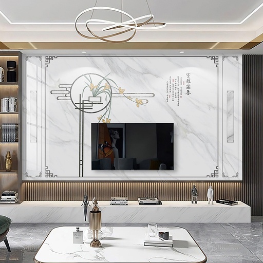Ngoài ra, bố cục hài hòa cũng là một yếu tố quan trọng. Các mẫu tranh PVC vân đá mẫu đối xứng mang lại cảm giác cân bằng, trật tự và trang nghiêm, rất phù hợp cho các khu vực sảnh chính hoặc không gian trang trọng.