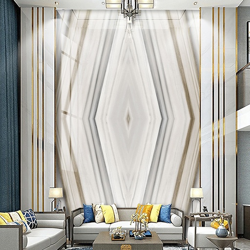 Dòng tranh đối xứng là lựa chọn hoàn hảo để tạo nên một điểm nhấn trung tâm đầy quyền lực và ấn tượng. Các đường vân được sắp xếp đối xứng qua một trục, tạo ra hiệu ứng thị giác cân bằng, hài hòa nhưng không kém phần độc đáo. Đây là lựa chọn lý tưởng cho vách tivi hoặc tường chính của không gian thông tầng, nơi cần một vẻ đẹp trang trọng và bề thế. Quý khách có thể tham khảo thêm các mẫu tranh PVC vân đá đối xứng để tìm kiếm sự cân bằng hoàn mỹ cho công trình của mình.