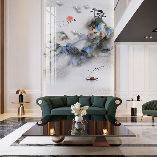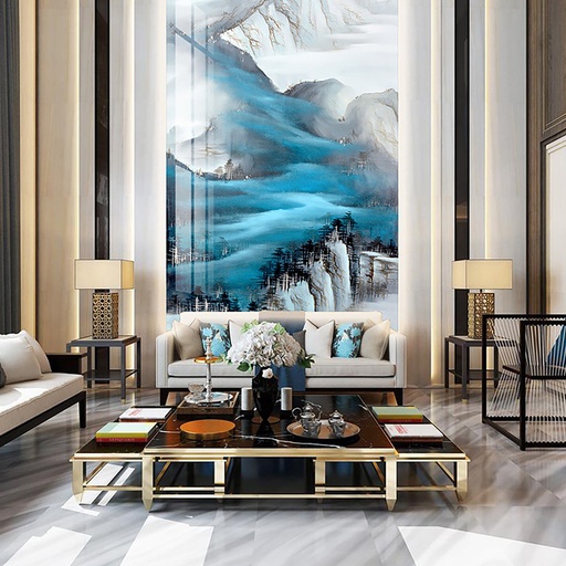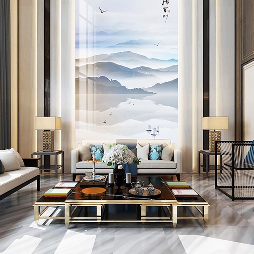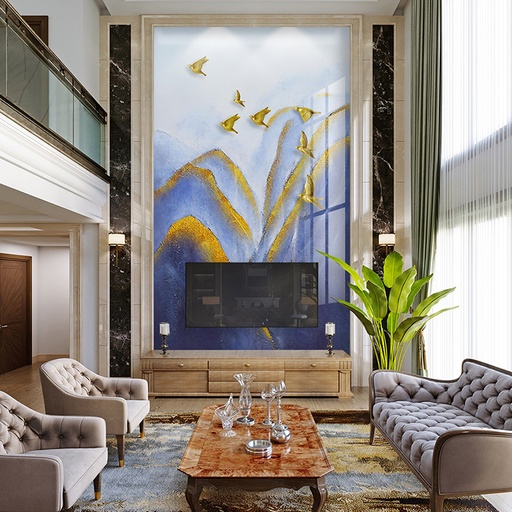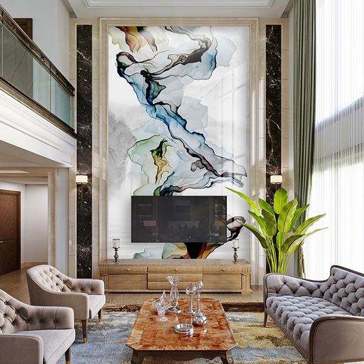 Tranh PVC vân đá thông tầng là giải pháp lý tưởng cho các công trình kiến trúc cao cấp, đòi hỏi sự hoành tráng và liền mạch. Chúng thường được ứng dụng để tạo điểm nhấn cho các mảng tường lớn tại vách tivi, tường sau sofa, khu vực giếng trời, sảnh đón khách của biệt thự, hoặc tường thang máy trong các căn Penthouse. Vẻ đẹp của chúng không chỉ gói gọn trong những không gian rộng lớn, mà còn có thể linh hoạt ứng dụng tương tự như tranh PVC vân đá phòng khách thông thường, giúp đồng bộ hóa phong cách thiết kế trong toàn bộ căn nhà. Dù theo đuổi phong cách cổ điển, tân cổ điển hay hiện đại, bộ sưu tập của 3K Home luôn có những mẫu tranh phù hợp để nâng tầm đẳng cấp không gian sống của bạn.