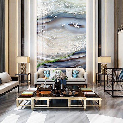 Lấy cảm hứng từ vẻ đẹp trong suốt và những đường vân huyền ảo của ngọc tự nhiên, dòng tranh này là biểu tượng của sự sang trọng và thịnh vượng. Màu sắc tươi sáng cùng khả năng xuyên sáng nhẹ của một số mẫu đặc biệt giúp không gian bừng sáng, tràn đầy năng lượng tích cực. Sử dụng tranh PVC vân đá giả ngọc cho khu vực thông tầng là cách để khẳng định đẳng cấp hoàng gia cho ngôi nhà của bạn.