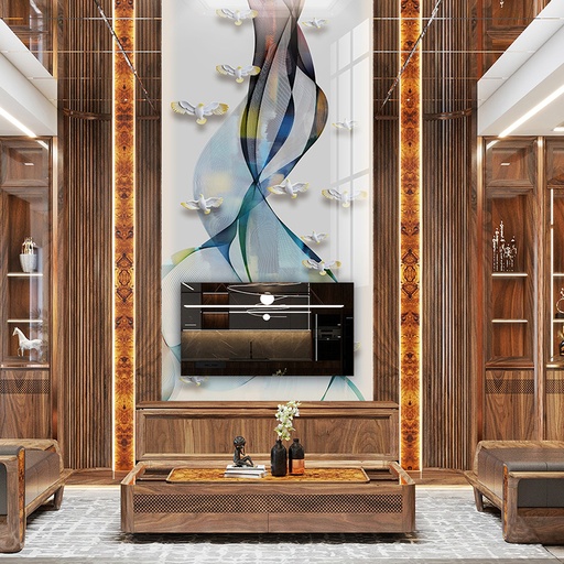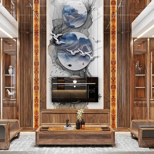 Dòng tranh đối xứng là lựa chọn hoàn hảo để tạo nên một điểm nhấn trung tâm đầy quyền lực và ấn tượng. Các đường vân được sắp xếp đối xứng qua một trục, tạo ra hiệu ứng thị giác cân bằng, hài hòa nhưng không kém phần độc đáo. Đây là lựa chọn lý tưởng cho vách tivi hoặc tường chính của không gian thông tầng, nơi cần một vẻ đẹp trang trọng và bề thế. Quý khách có thể tham khảo thêm các mẫu tranh PVC vân đá đối xứng để tìm kiếm sự cân bằng hoàn mỹ cho công trình của mình.