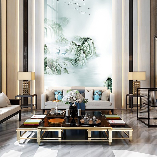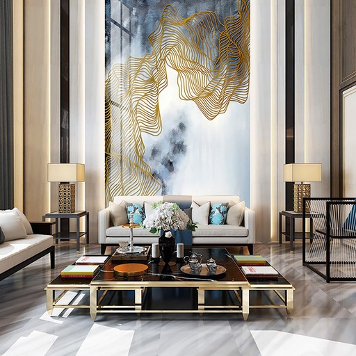 Tranh PVC vân đá thông tầng là giải pháp lý tưởng cho các công trình kiến trúc cao cấp, đòi hỏi sự hoành tráng và liền mạch. Chúng thường được ứng dụng để tạo điểm nhấn cho các mảng tường lớn tại vách tivi, tường sau sofa, khu vực giếng trời, sảnh đón khách của biệt thự, hoặc tường thang máy trong các căn Penthouse. Vẻ đẹp của chúng không chỉ gói gọn trong những không gian rộng lớn, mà còn có thể linh hoạt ứng dụng tương tự như tranh PVC vân đá phòng khách thông thường, giúp đồng bộ hóa phong cách thiết kế trong toàn bộ căn nhà. Dù theo đuổi phong cách cổ điển, tân cổ điển hay hiện đại, bộ sưu tập của 3K Home luôn có những mẫu tranh phù hợp để nâng tầm đẳng cấp không gian sống của bạn.