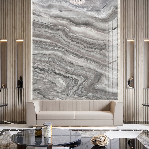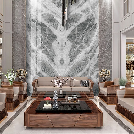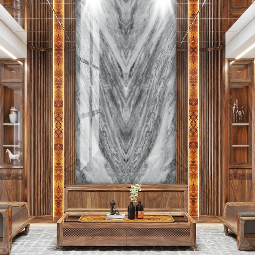 • Vân đá xám đối xứng: Đẳng cấp, sang trọng cho các vách lớn.