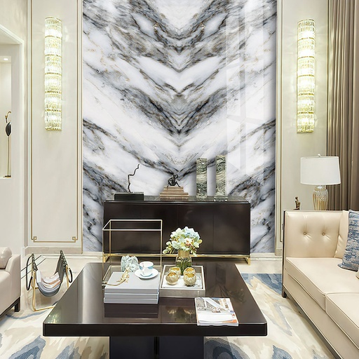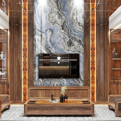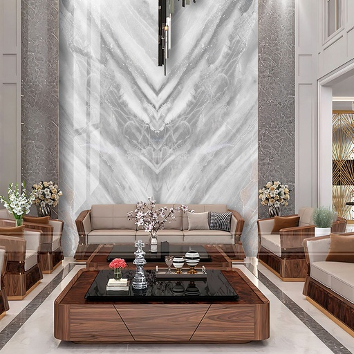 • Vân đá xám đối xứng: Đẳng cấp, sang trọng cho các vách lớn.